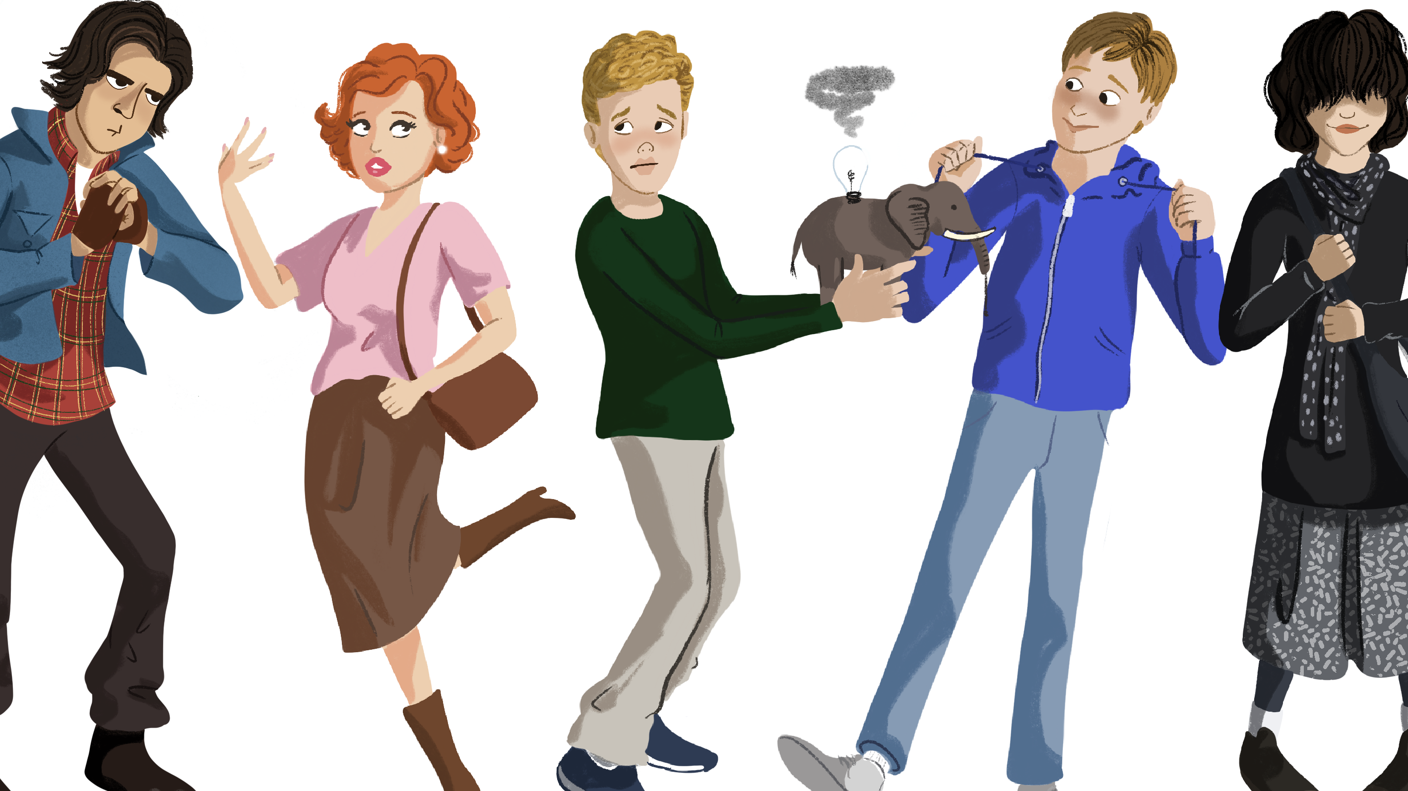 These child-friendly illustrations depict cute and colorful characters that seem to call kid lit home. This series of illustrations has a watercolor and pencil effect even though they were digitally made.