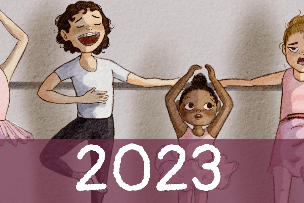Characters depicted here include both familiar figures and originals. Recurring characters include seven little ballet dancers, little Naomi wandering in the snow, stylish Savannah who likes to dress up, and imaginative Max with his bucket helmet. You can also find popular characters like Coraline, Link from The Legend of Zelda series, and Mirabel (Encanto) and Miguel (Coco) jamming out together. You may also see art of famous figures from theater, music, and film.