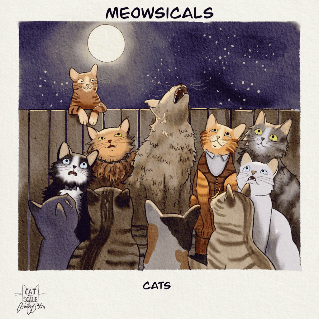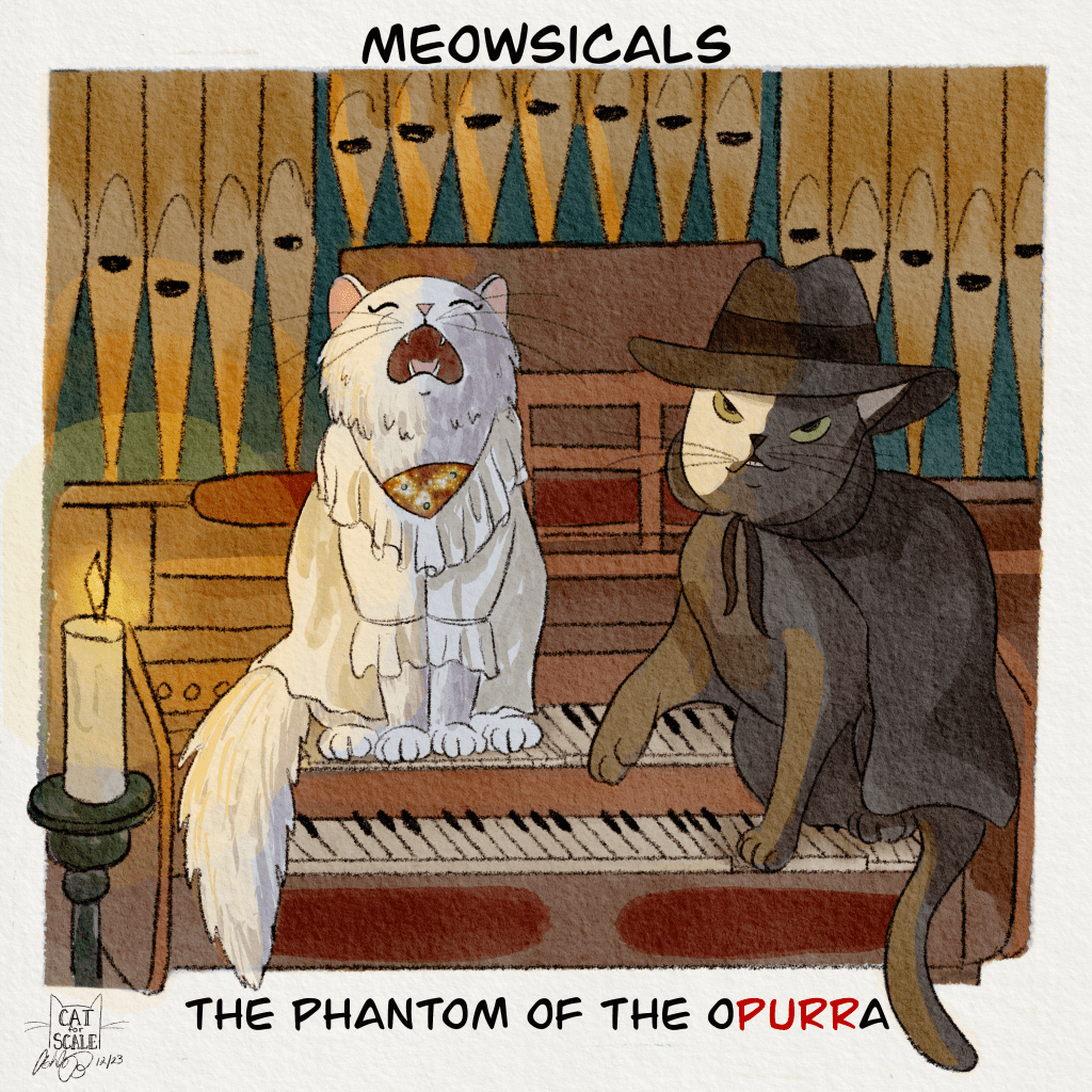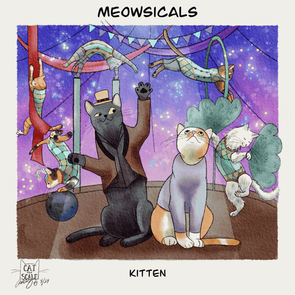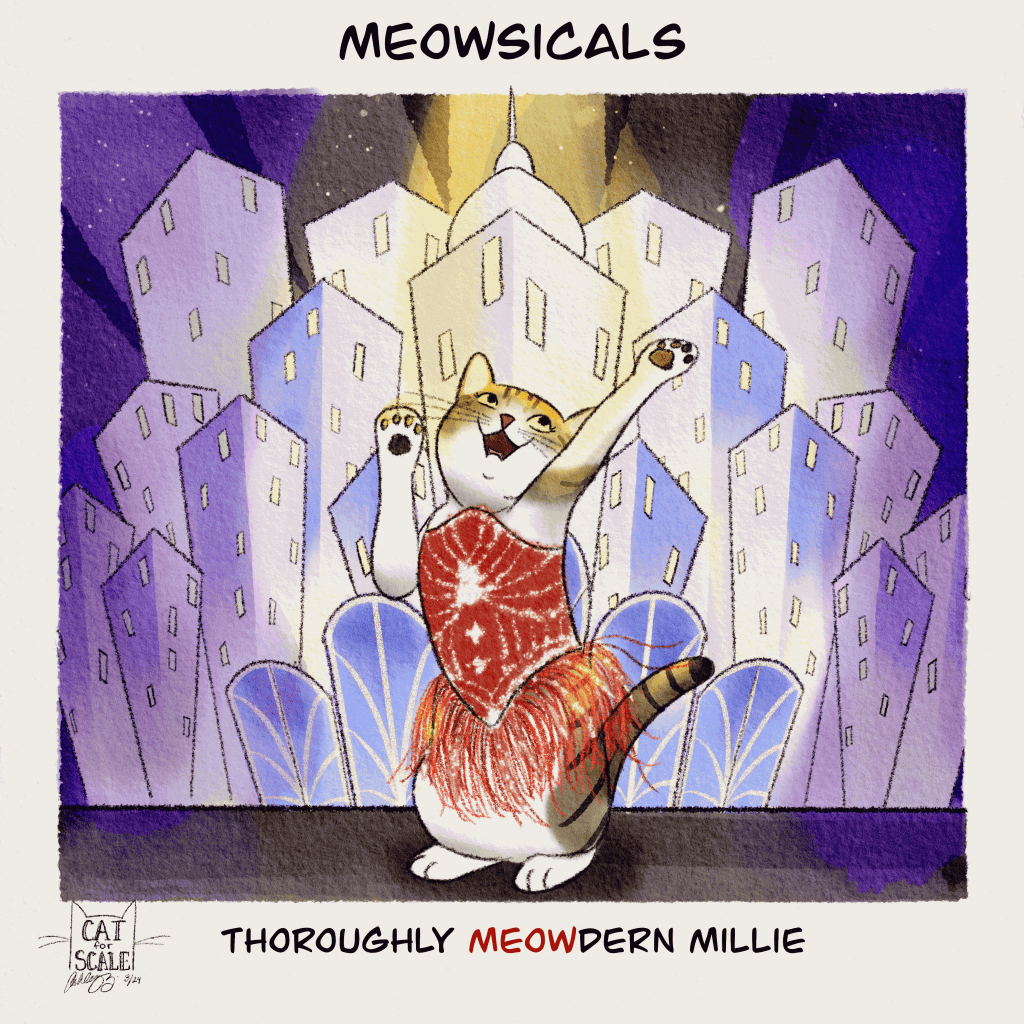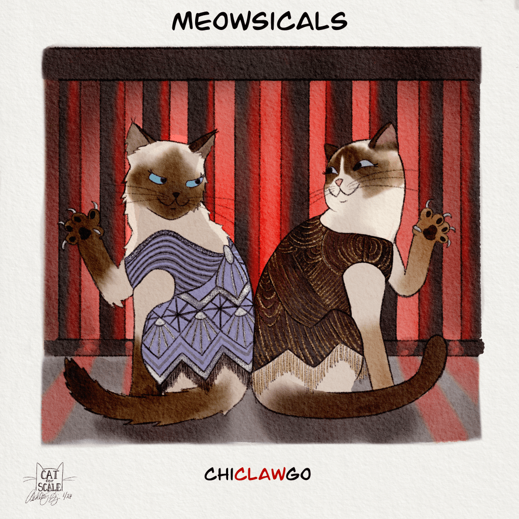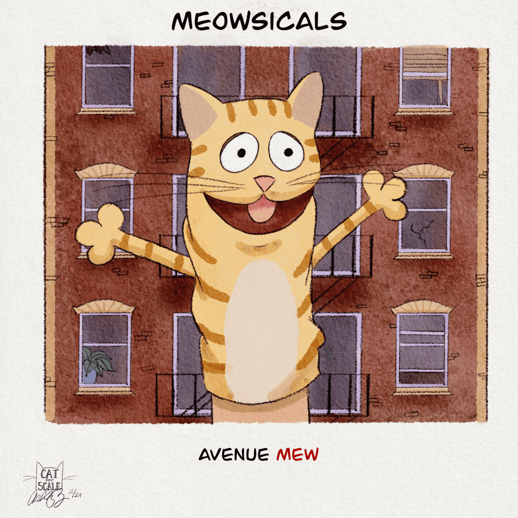 This collection of illustrations combines two of my favorite things: musical theater and cats. Nicknamed “Monday Meowsicals” on my Instagram, a new musical parody featuring cats will be uploaded every Monday. Titles of shows feature silly feline puns.