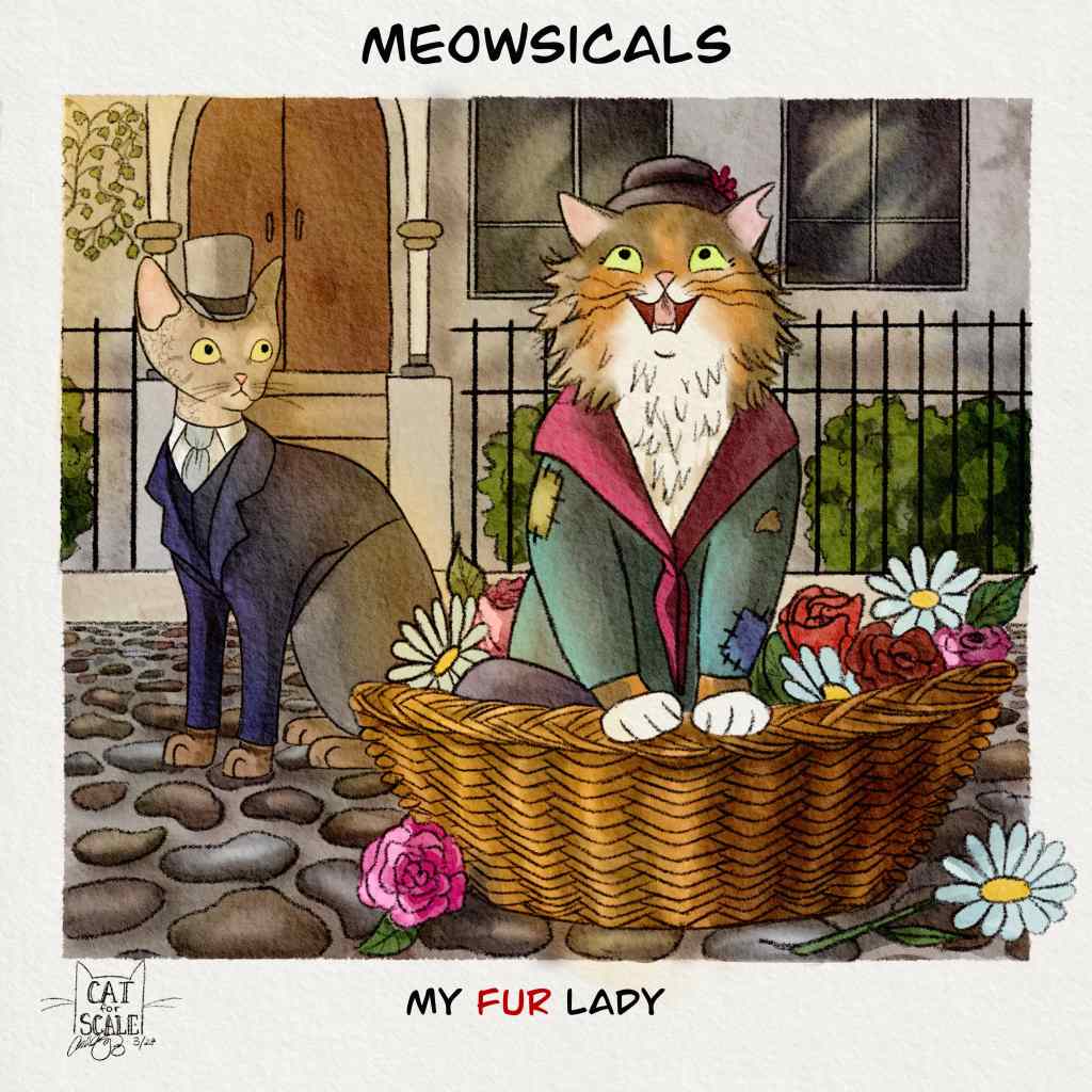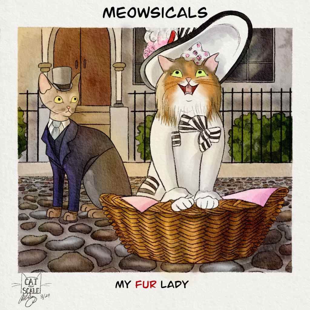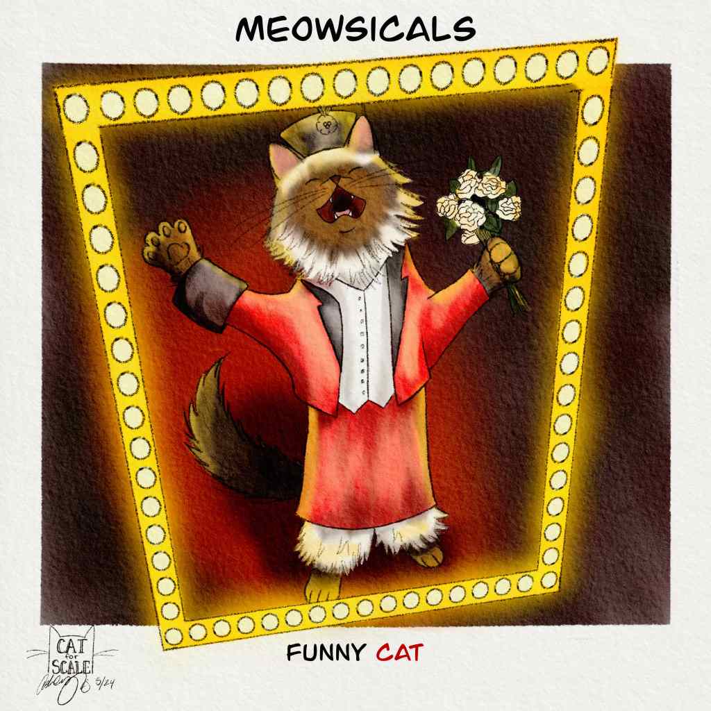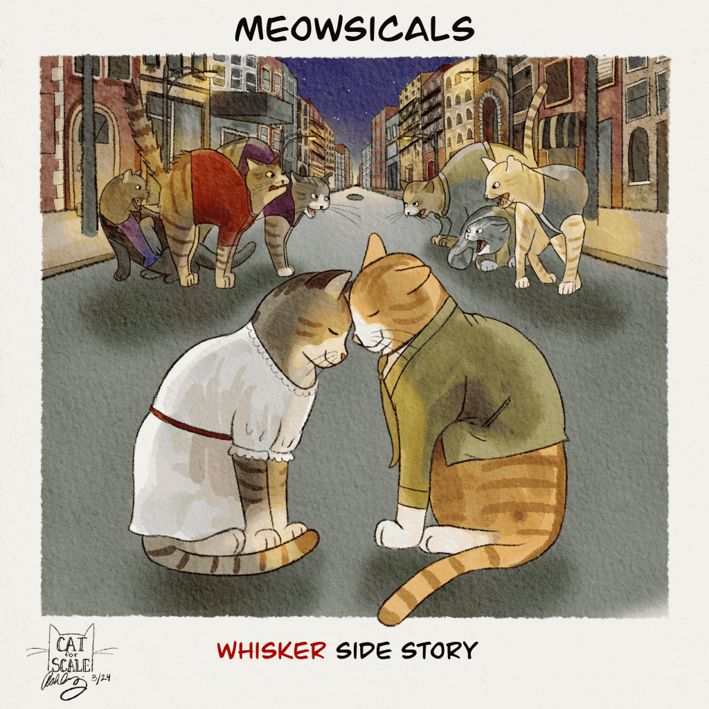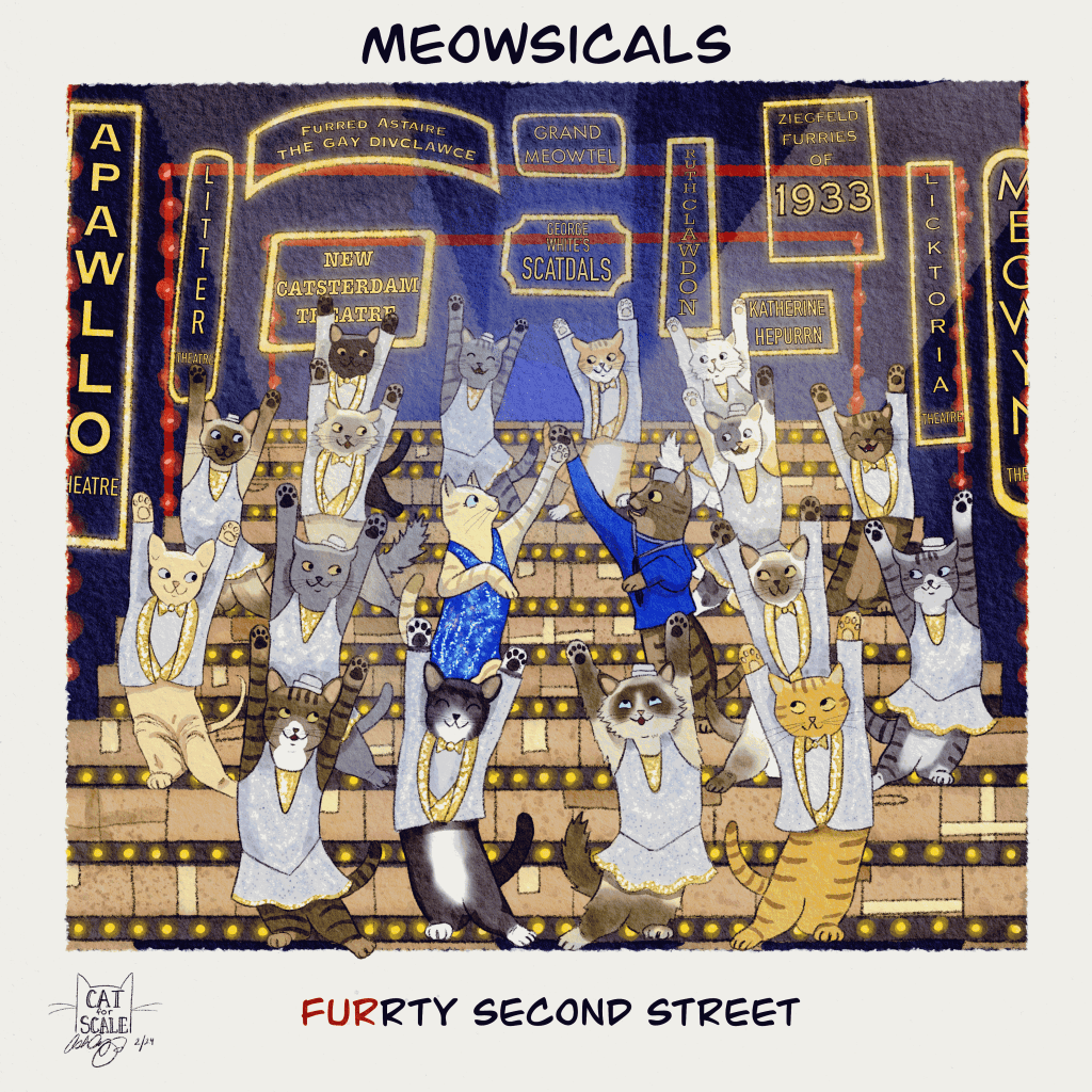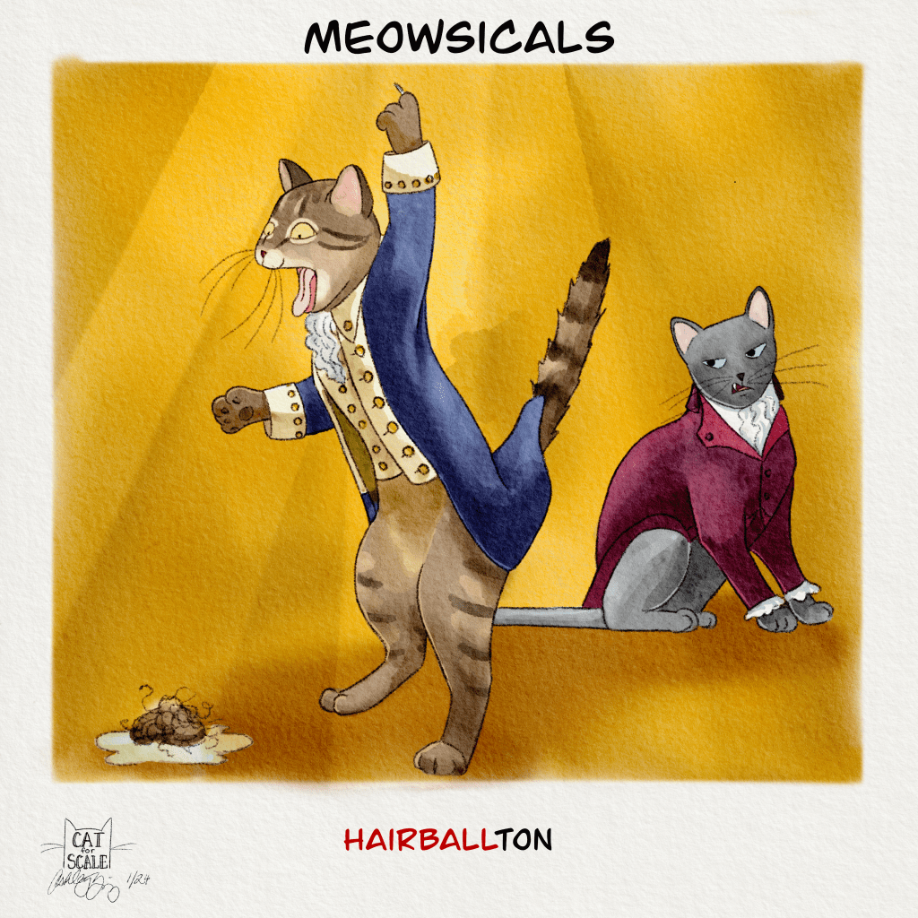 This collection of illustrations combines two of my favorite things: musical theater and cats. Nicknamed “Monday Meowsicals” on my Instagram, a new musical parody featuring cats will be uploaded every Monday. Titles of shows feature silly feline puns.