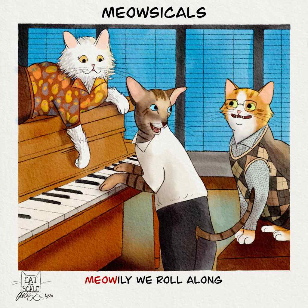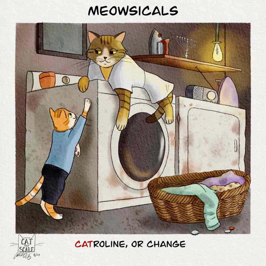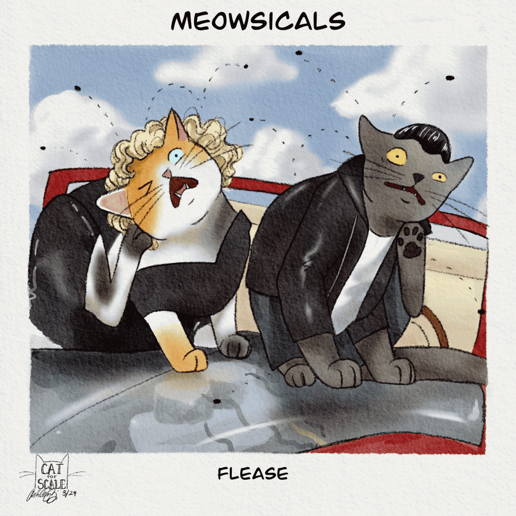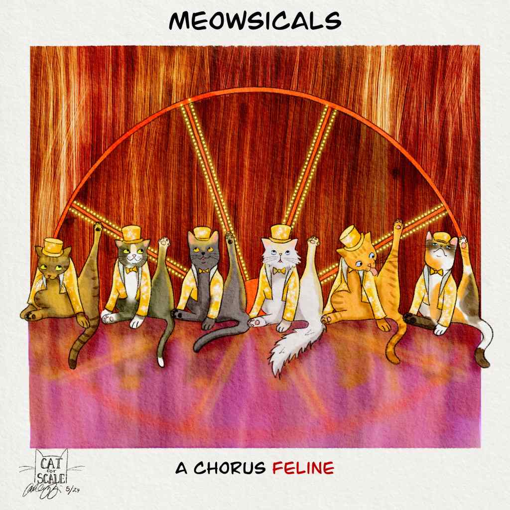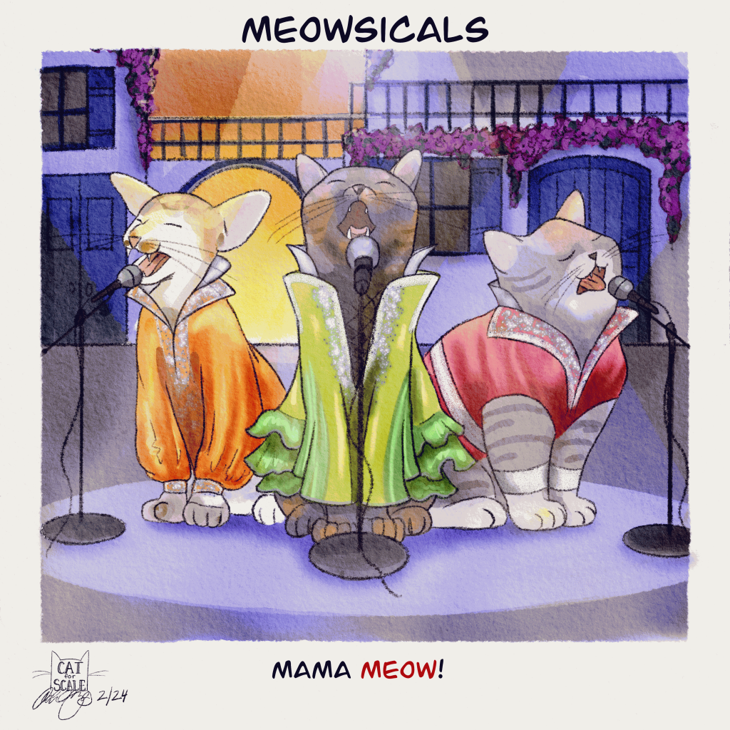 This collection of illustrations combines two of my favorite things: musical theater and cats. Nicknamed “Monday Meowsicals” on my Instagram, a new musical parody featuring cats will be uploaded every Monday. Titles of shows feature silly feline puns.