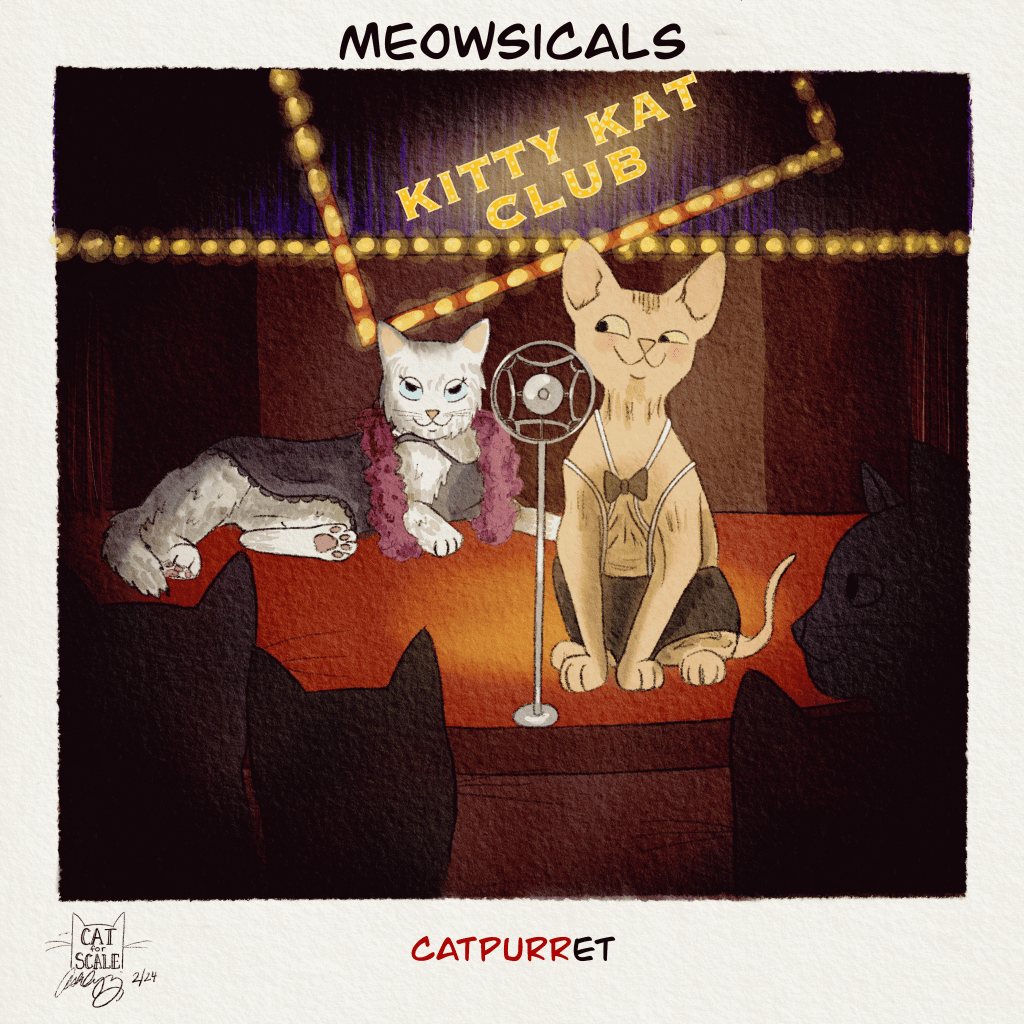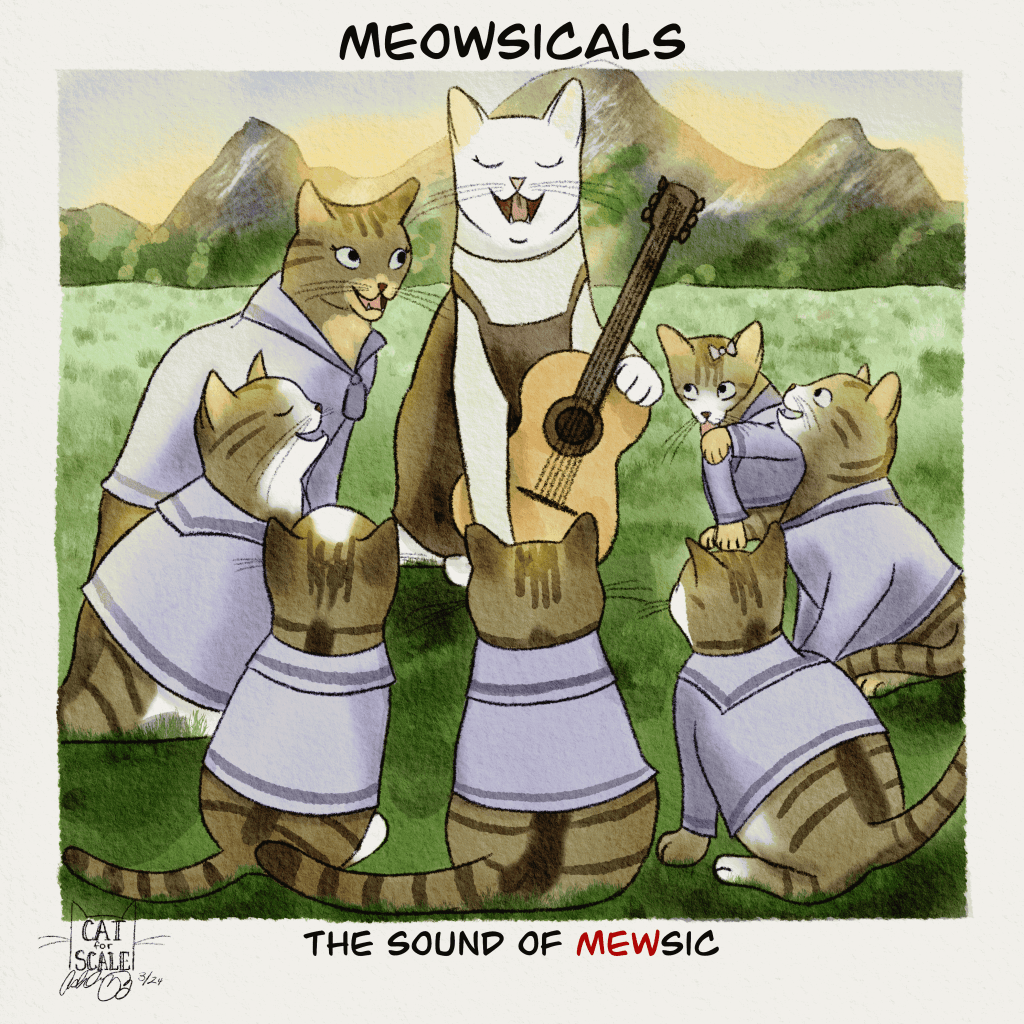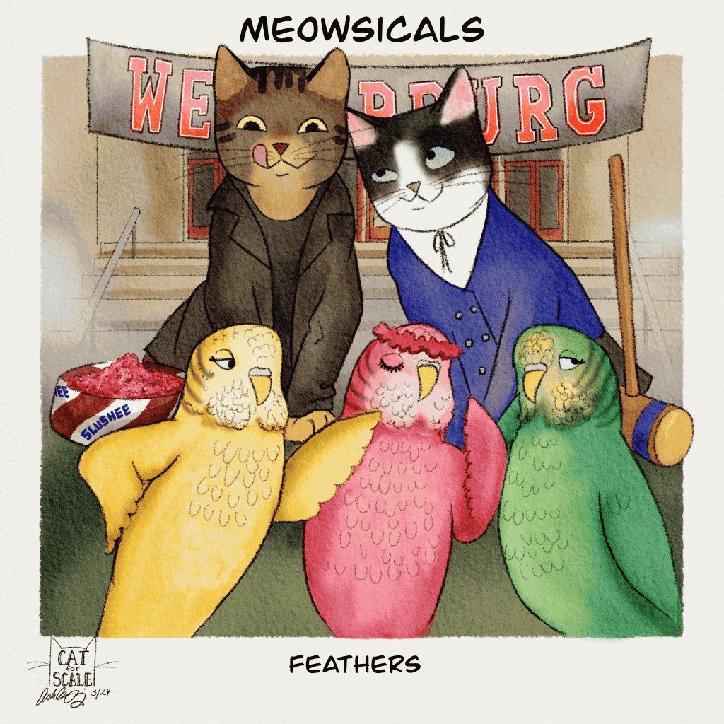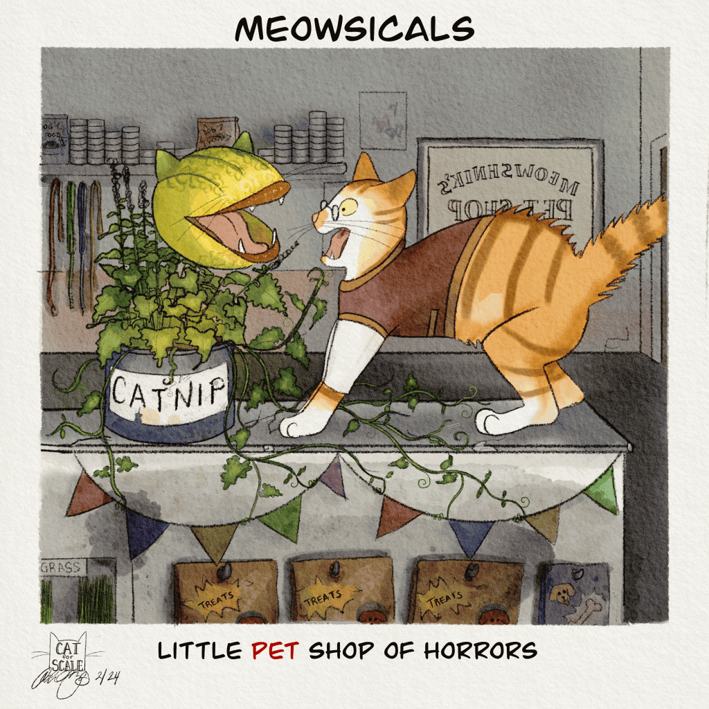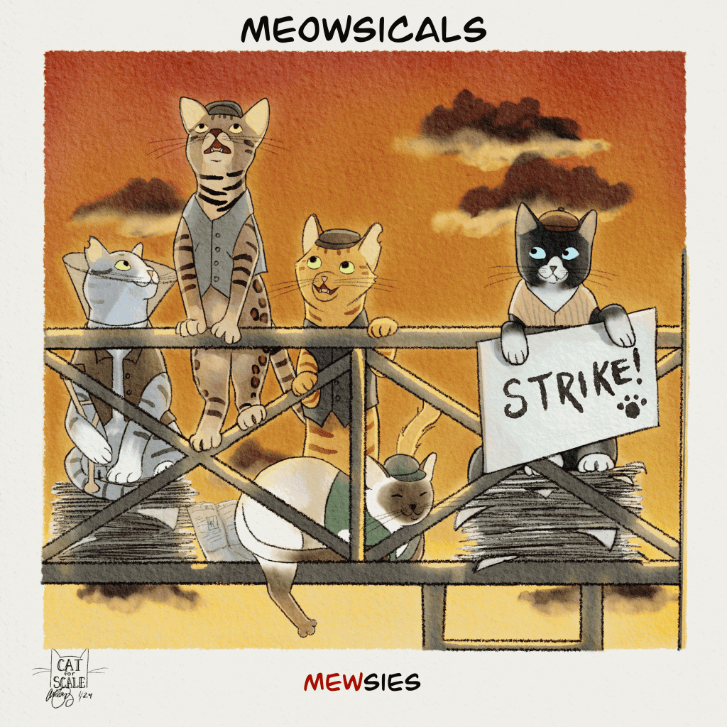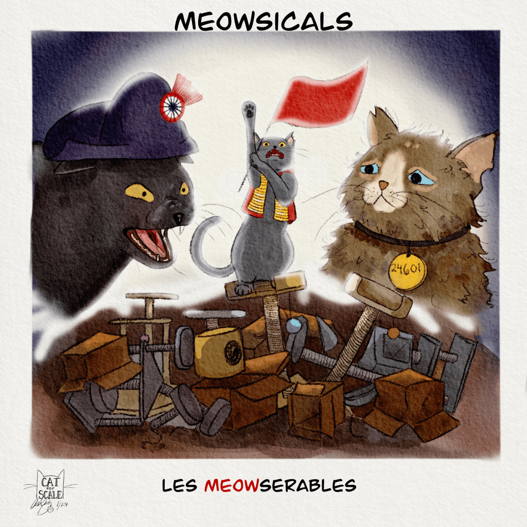 This collection of illustrations combines two of my favorite things: musical theater and cats. Nicknamed “Monday Meowsicals” on my Instagram, a new musical parody featuring cats will be uploaded every Monday. Titles of shows feature silly feline puns.