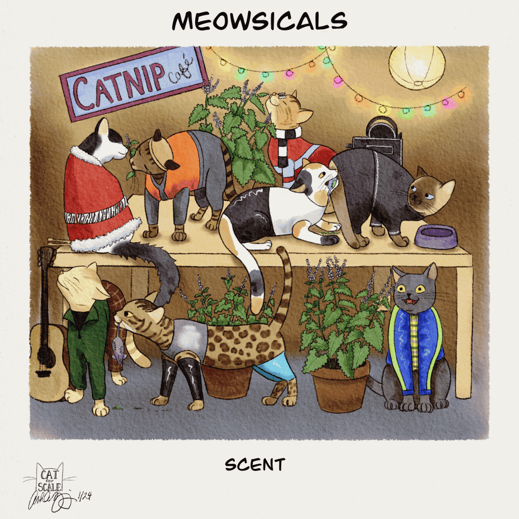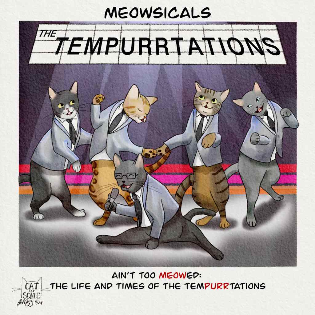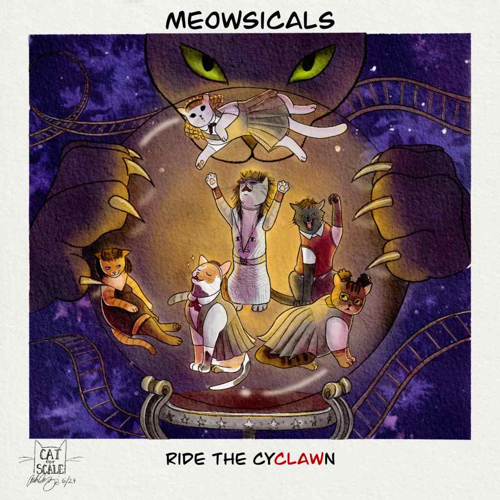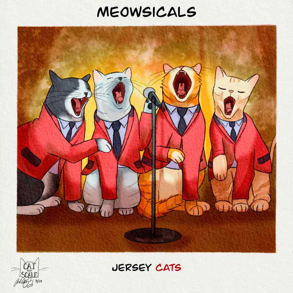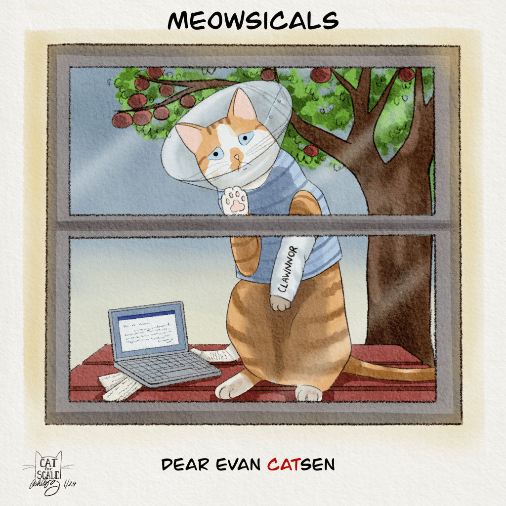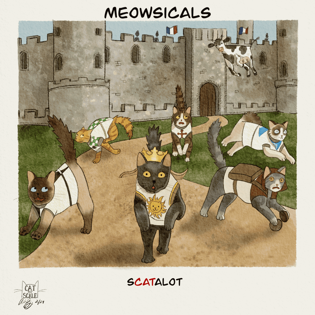 This collection of illustrations combines two of my favorite things: musical theater and cats. Nicknamed “Monday Meowsicals” on my Instagram, a new musical parody featuring cats will be uploaded every Monday. Titles of shows feature silly feline puns.